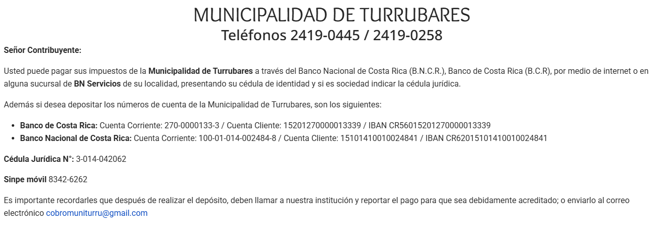 La Municipalidad de Turrubares pone a disposición los horarios de los diferentes servicios municipales para atención del público.